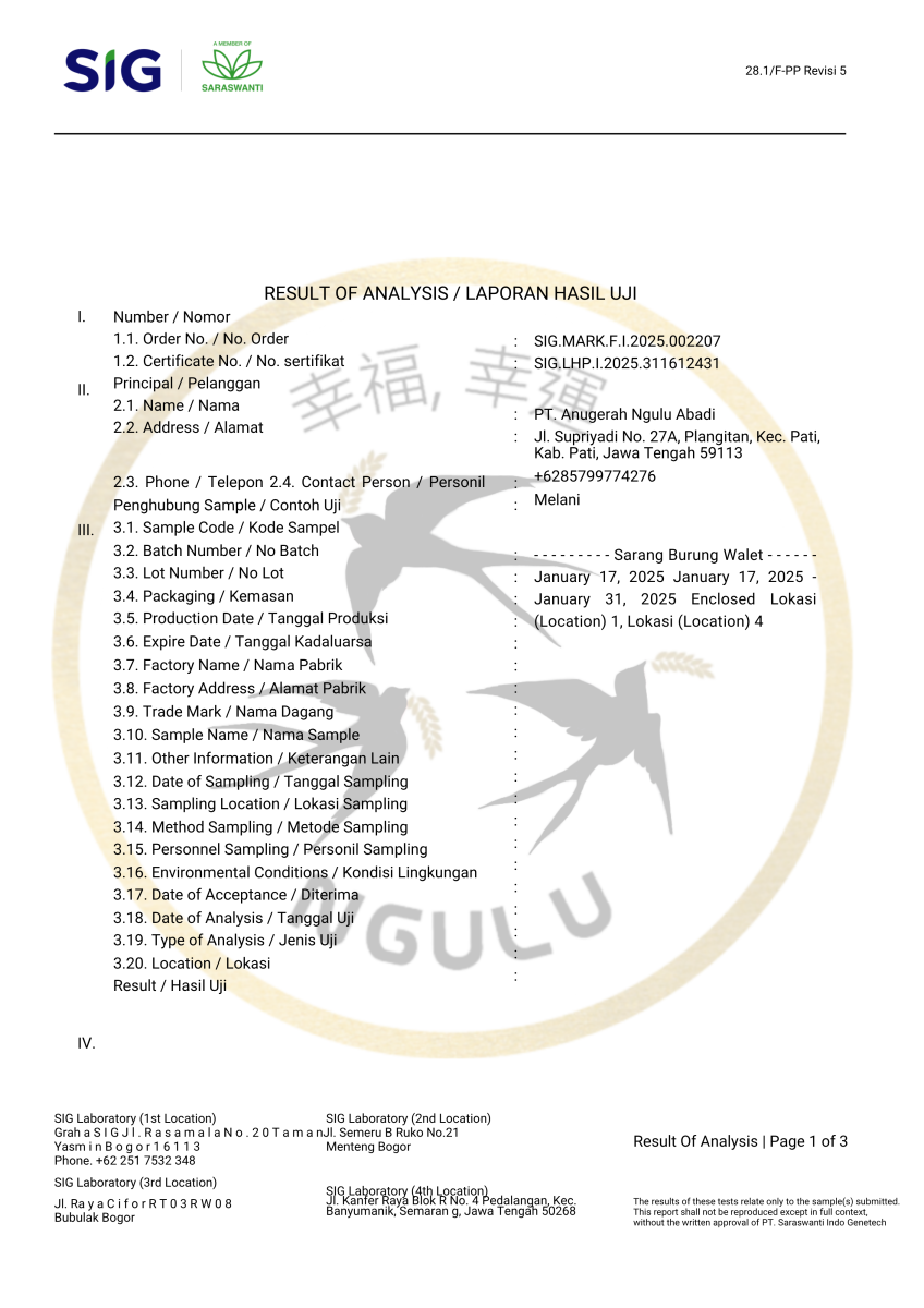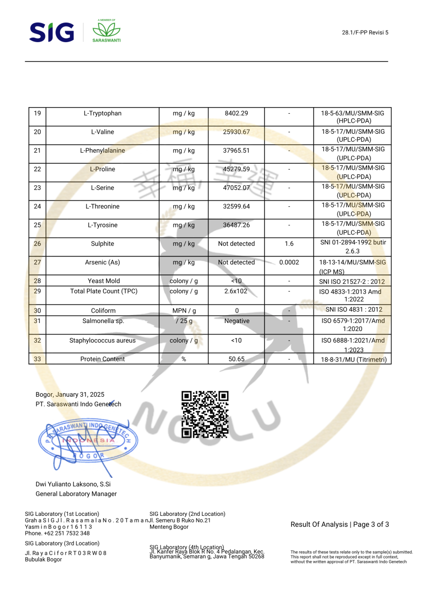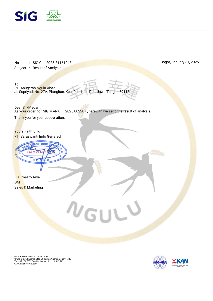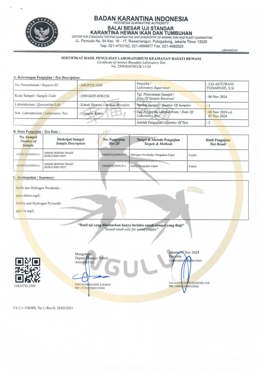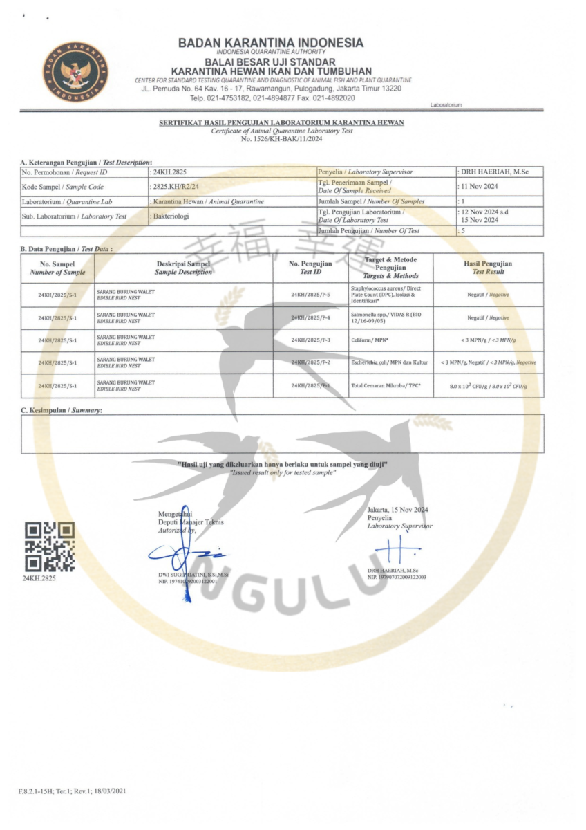 We are also actively monitored by the Central Java Animal, Fish, and Plant Quarantine Agency. Their laboratory is also national accredited. These are our laboratory test result from them.