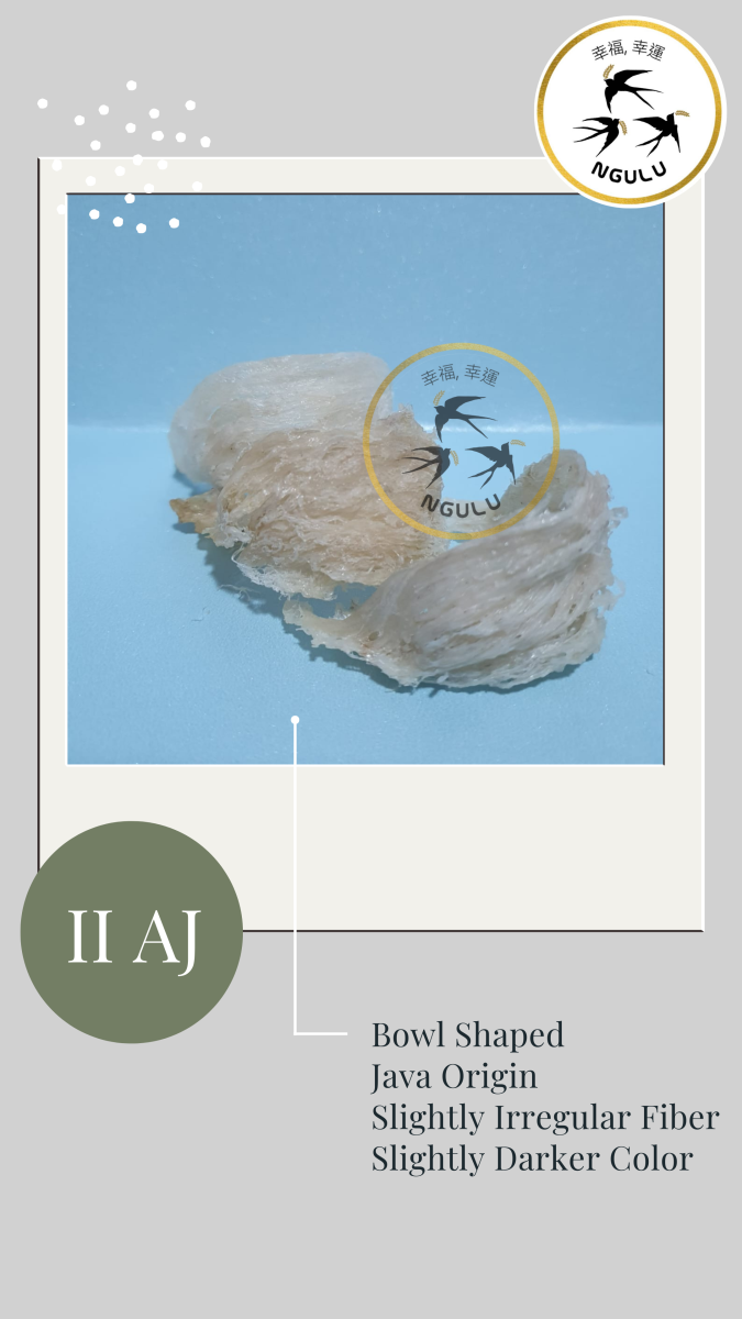 II AJ has bowl shape, smaller dan SP and has irregular fiber and also has darker yellowish color.