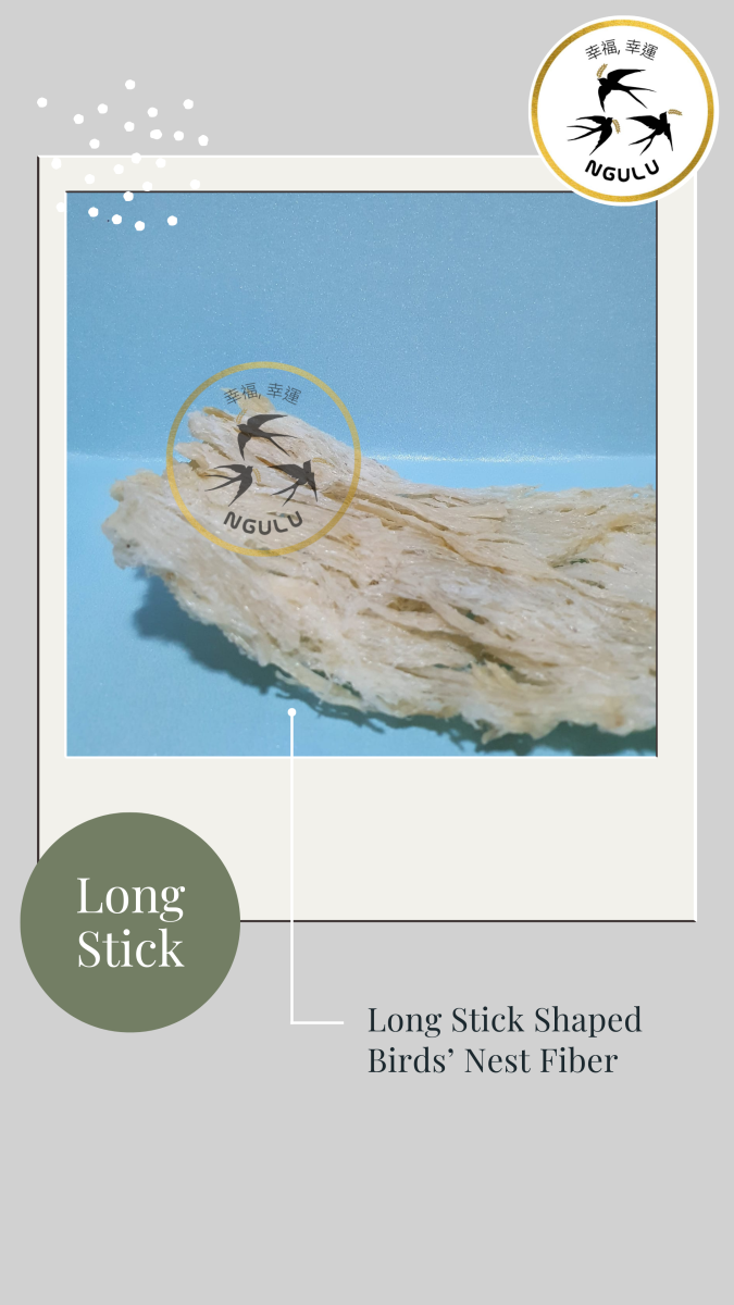Long stick is made from birds' nest fiber. The color varied from bright to yellowish.